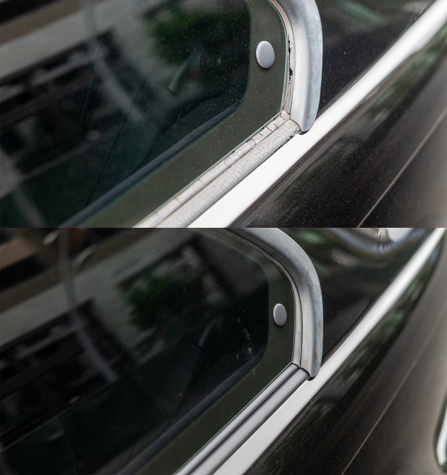BMW forces you to replace the entire upper window trim to replace the seal that runs from the B to the C pillar. The cost per side from the dealership starts at $550+ per side. This cost-effective kit includes the material needed along with photo instructions to refurbish the window seals on your own for a fraction of the cost with a long lasting material.